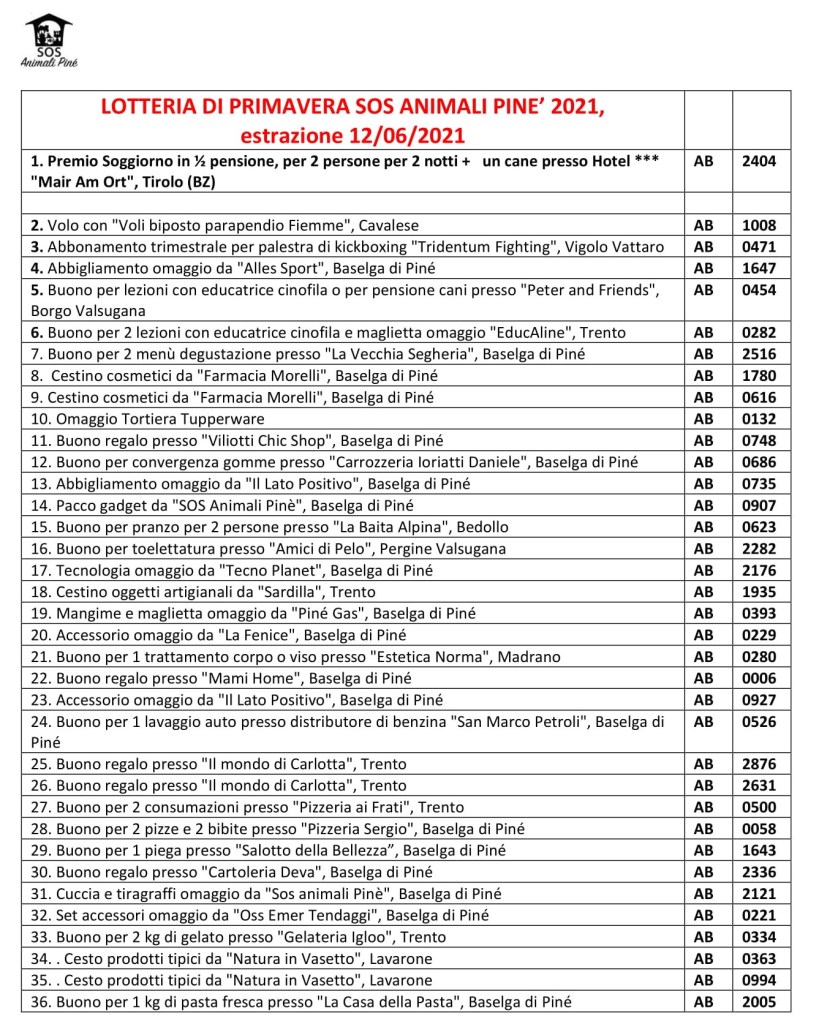Per il ritiro dei premi (entro il 30/06/2021) contattare via messaggio whatsapp Anna al 348 42 97 954.