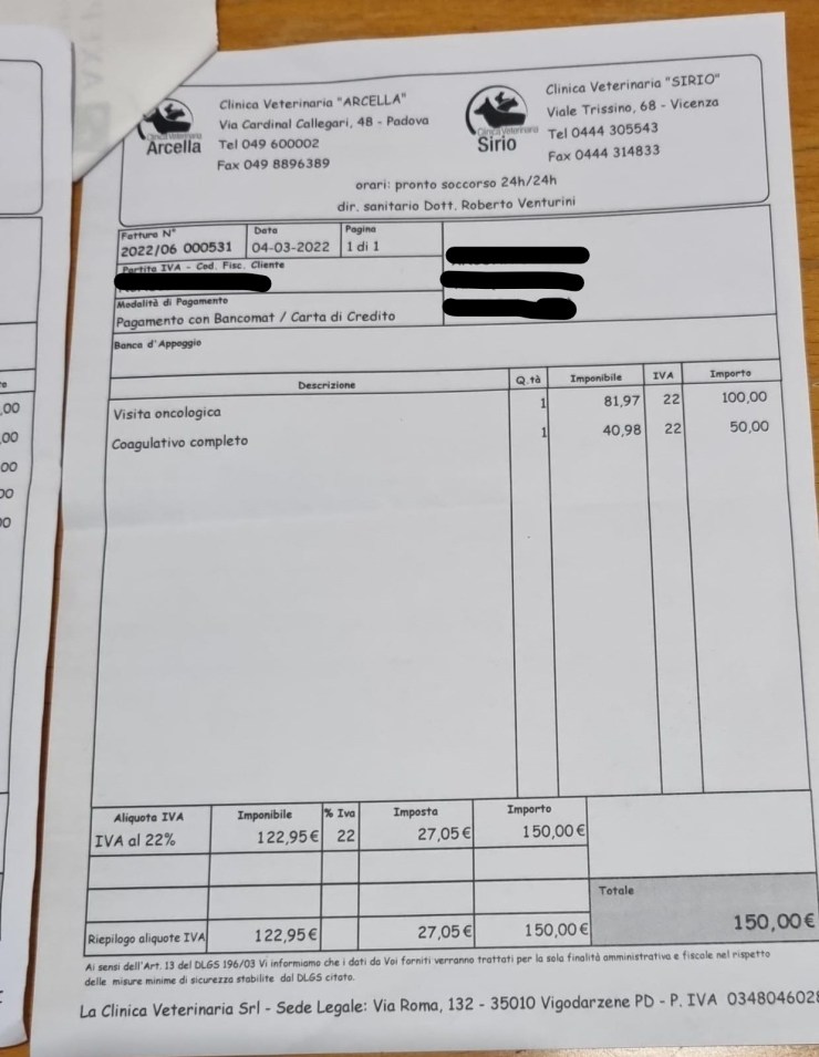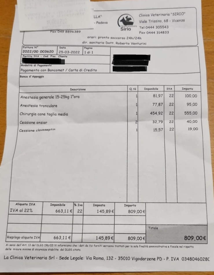 Solo un mese dopo che ha trovato finalmente la sua famiglia per sempre, le è stata trovata una massa ad una mammella. È stato uno shock per la sua adottante e anche per noi. Nonostante la notizia terribile la sua famiglia speciale ha deciso di affrontare questo difficile percorso. Una serie di esami e una diagnostica completa hanno escluso la presenza di metastasi, e così Alfa il 25/03/22 è stata operata.
