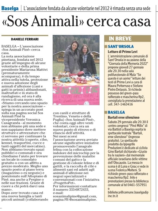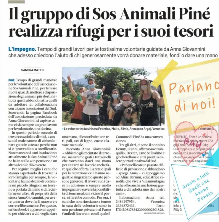 Rassegna Stampa L’Adige 20 ottobre2024 Piné-Sover 02/23 Piné-Sover notizie 06/22 L’Adige 25/01/2022 Trentino, 25/08/2020 Trentino, 08/06/2020 Trentino, 15/04/2020 L’Adige 06/2020 L’Adige, 11/04/2016 GiornaleTrentino 24/02/2014 Trentino, 10/03/2013 Trentino, 16/04/2012 2012